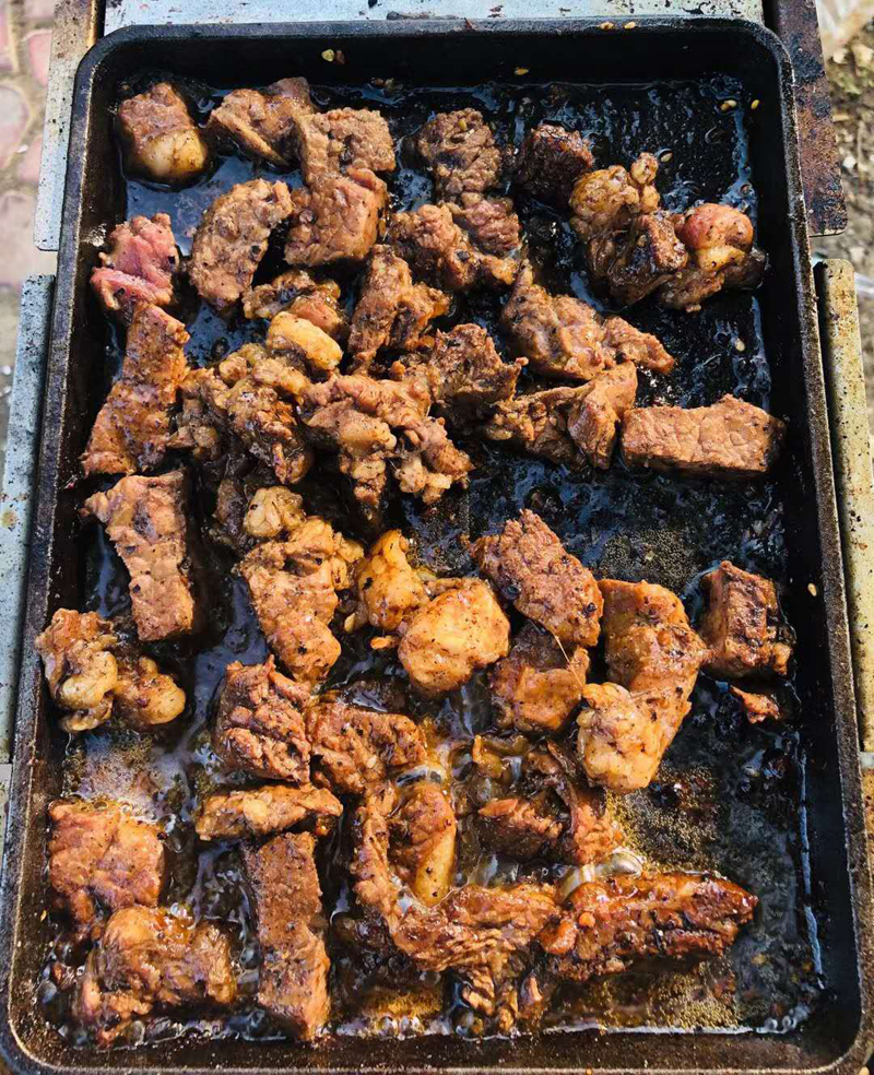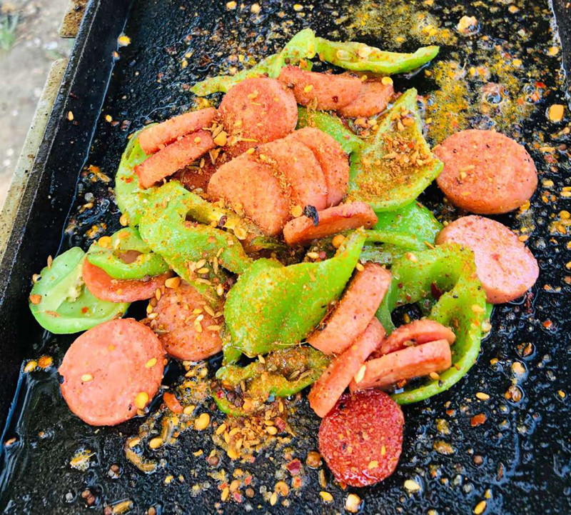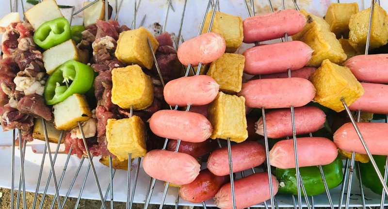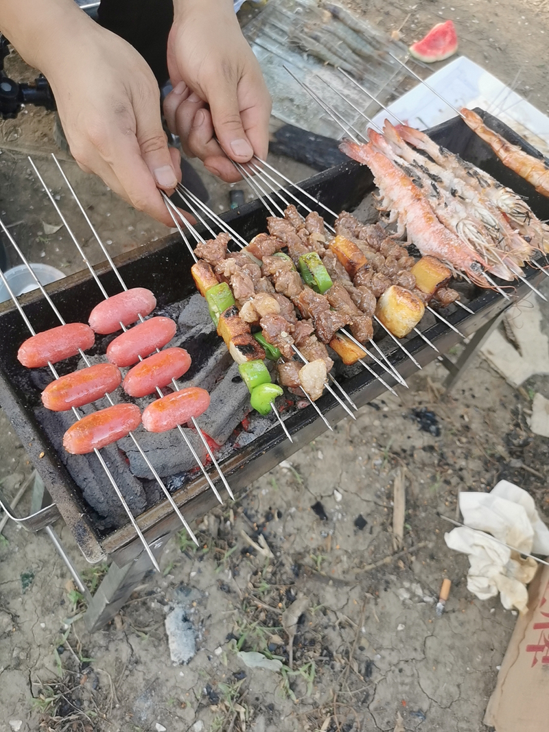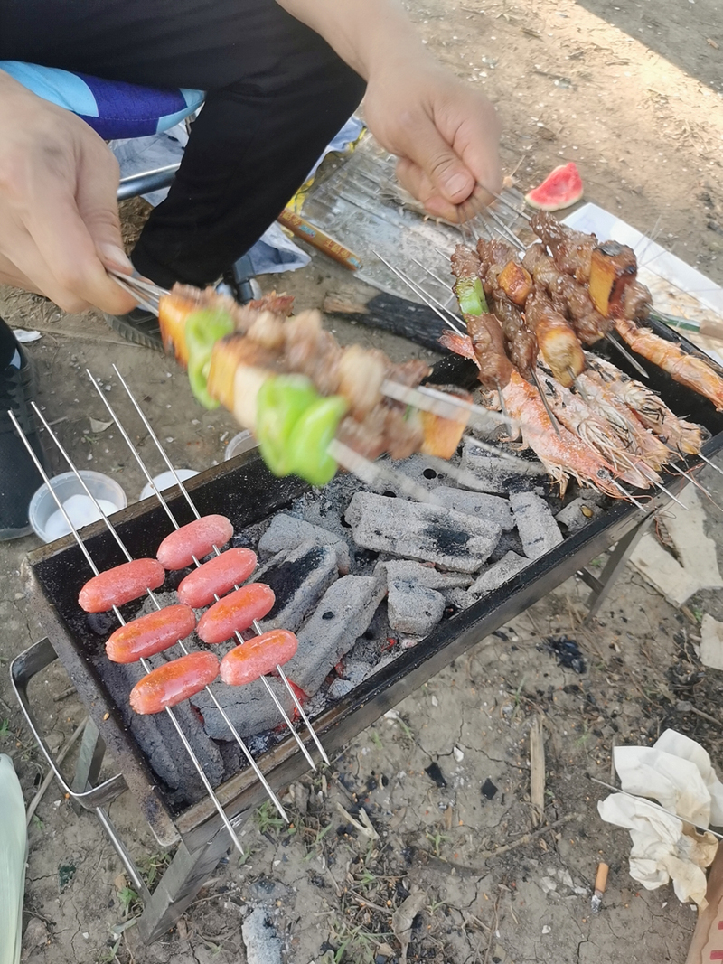 終于到了大家期待的燒烤環節,香腸,肉,青菜,蝦也紛紛擔當起了主角,為這場味蕾上的狂歡貢獻著“演技”。